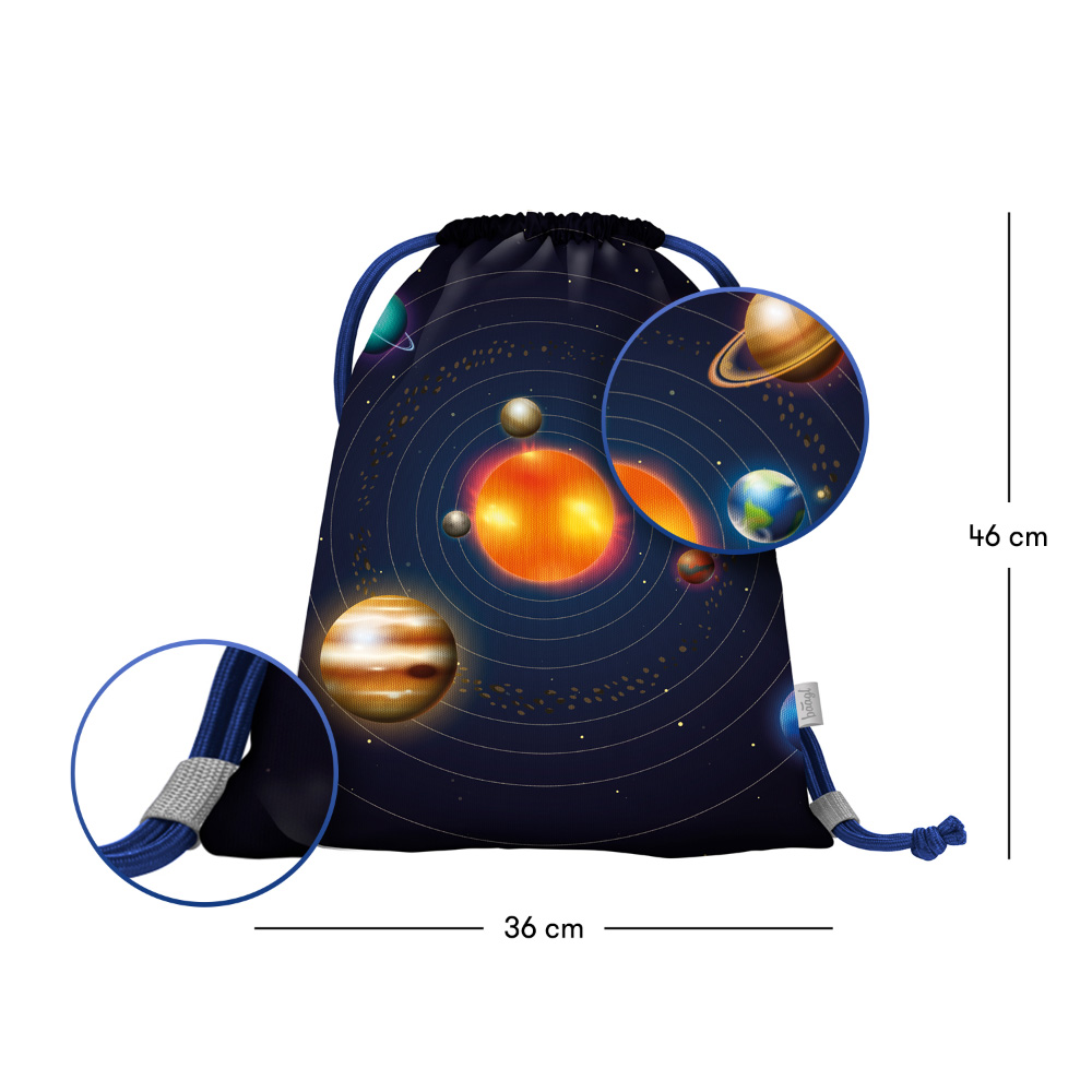 • Sáček je vybaven karabinkou díky, které ho lze připevnit na aktovku.