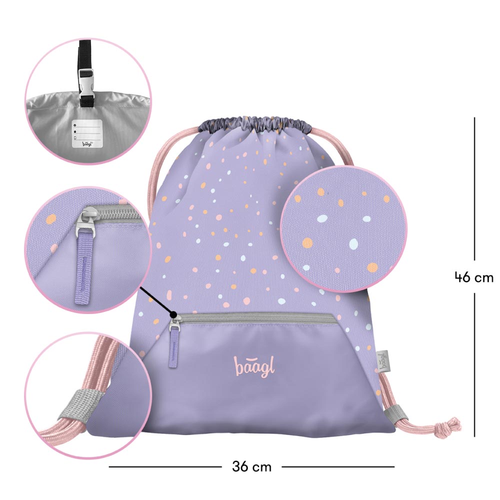 • Sáček je vyroben z pevného omyvatelného materiálu a v jeho dolní části je umístěna praktická kapsička na zip.