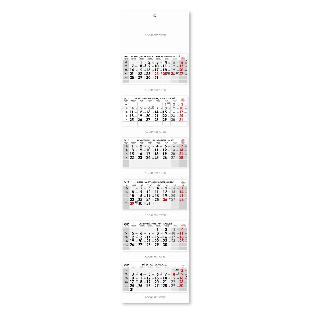 Formát kalendária: 295 x 135 mm