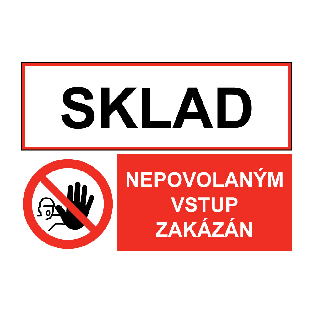 RBT-P31-1003 | SKLAD - NEPOVOLANÝM VSTUP ZAKÁZÁN, KOMBINACE, plast 2 mm, A4 | Plastová tabulka 2 mm | A4 (210x297 mm) | AAApapir |