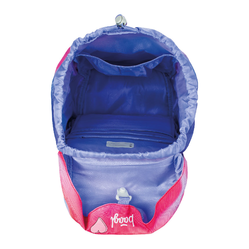 • Uvnitř aktovky je průhledná kapsa s rozvrhem a vnitřní organizér umožňující rovnoměrné rozložení hmotnosti, doplněný gumičkou pro fixaci.
