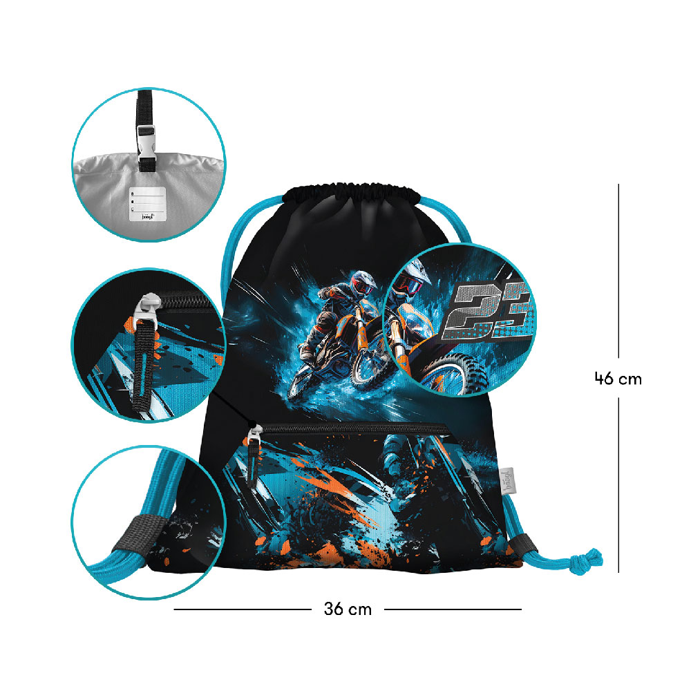 • Sáček je vyroben z pevného omyvatelného materiálu a v jeho dolní části je umístěna praktická kapsa na zip.