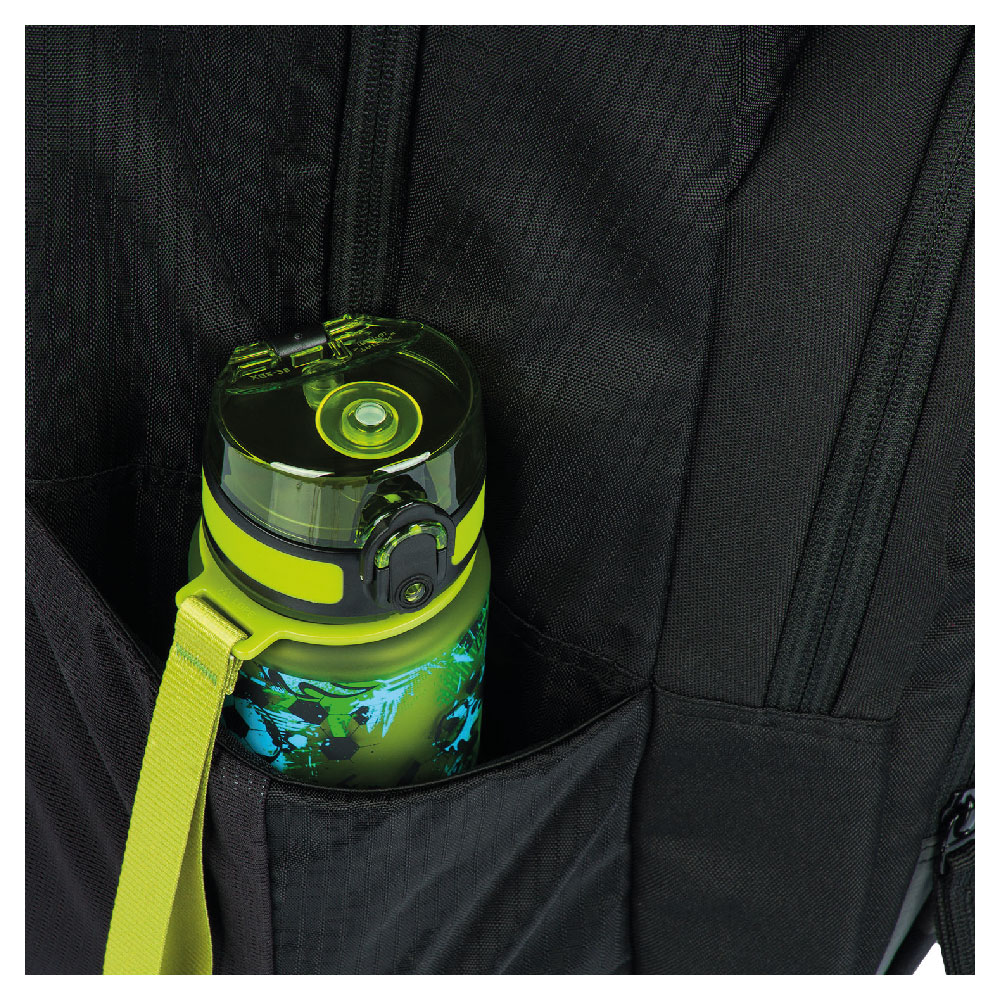 • Boční kapsy z elastického materiálu, které jsou vhodné pro jednu z našich láhví na pití.