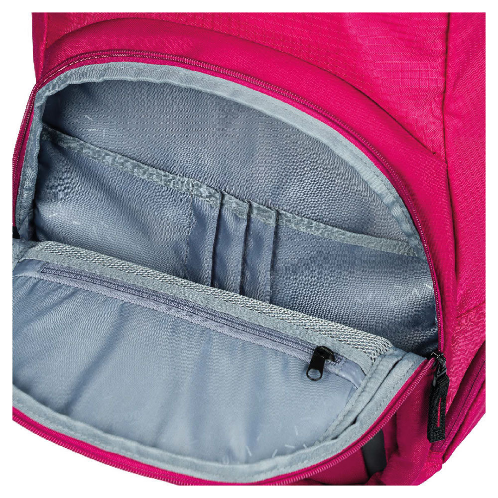 • Uvnitř aktovky je průhledná kapsa s rozvrhem a vnitřní organizér umožňující rovnoměrné rozložení hmotnosti, doplněný gumičkou pro fixaci.