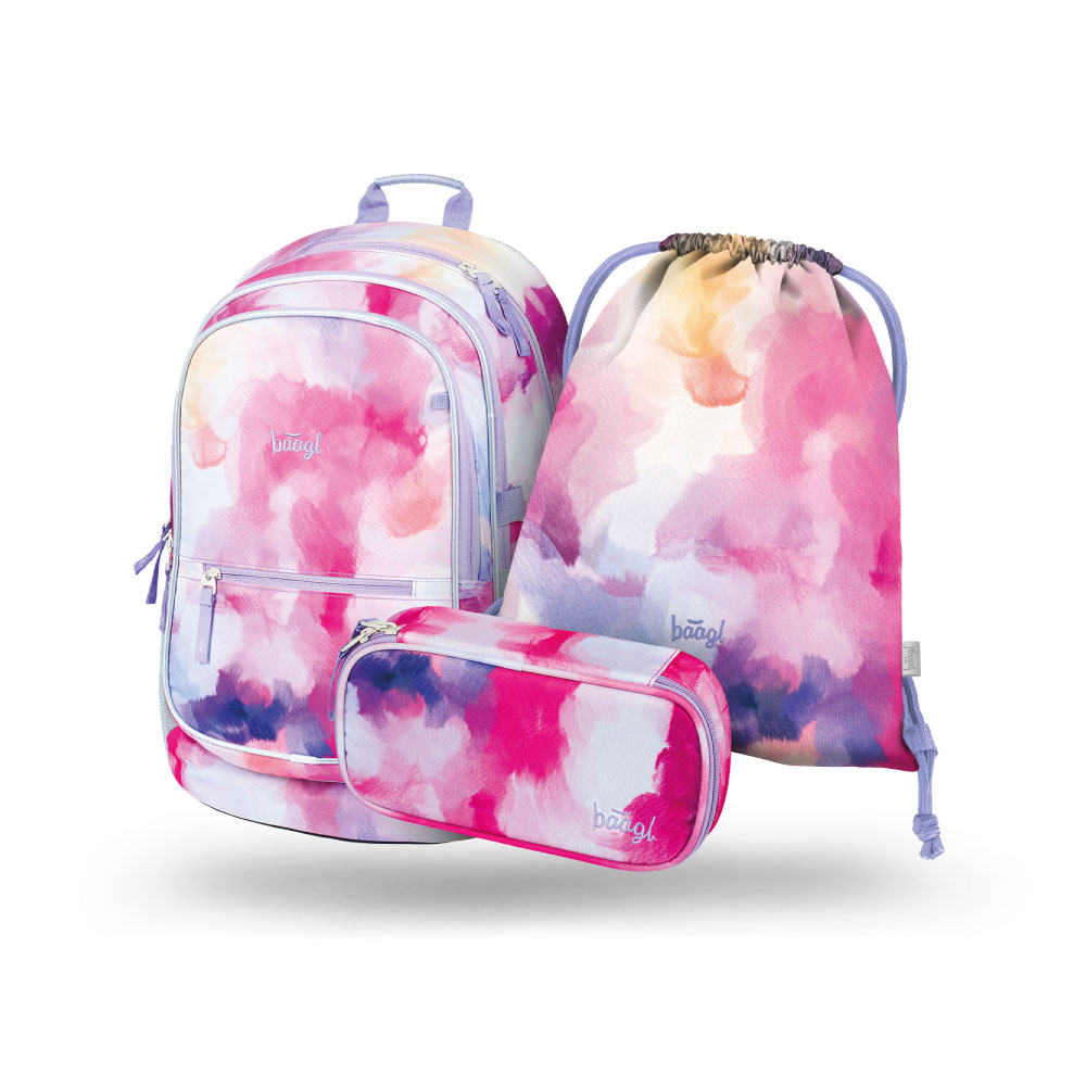 • Abstraktně barevný školní set složený z batohu Core, etue a nepostradatelného sáčku na obuv, vhodný od 3. třídy