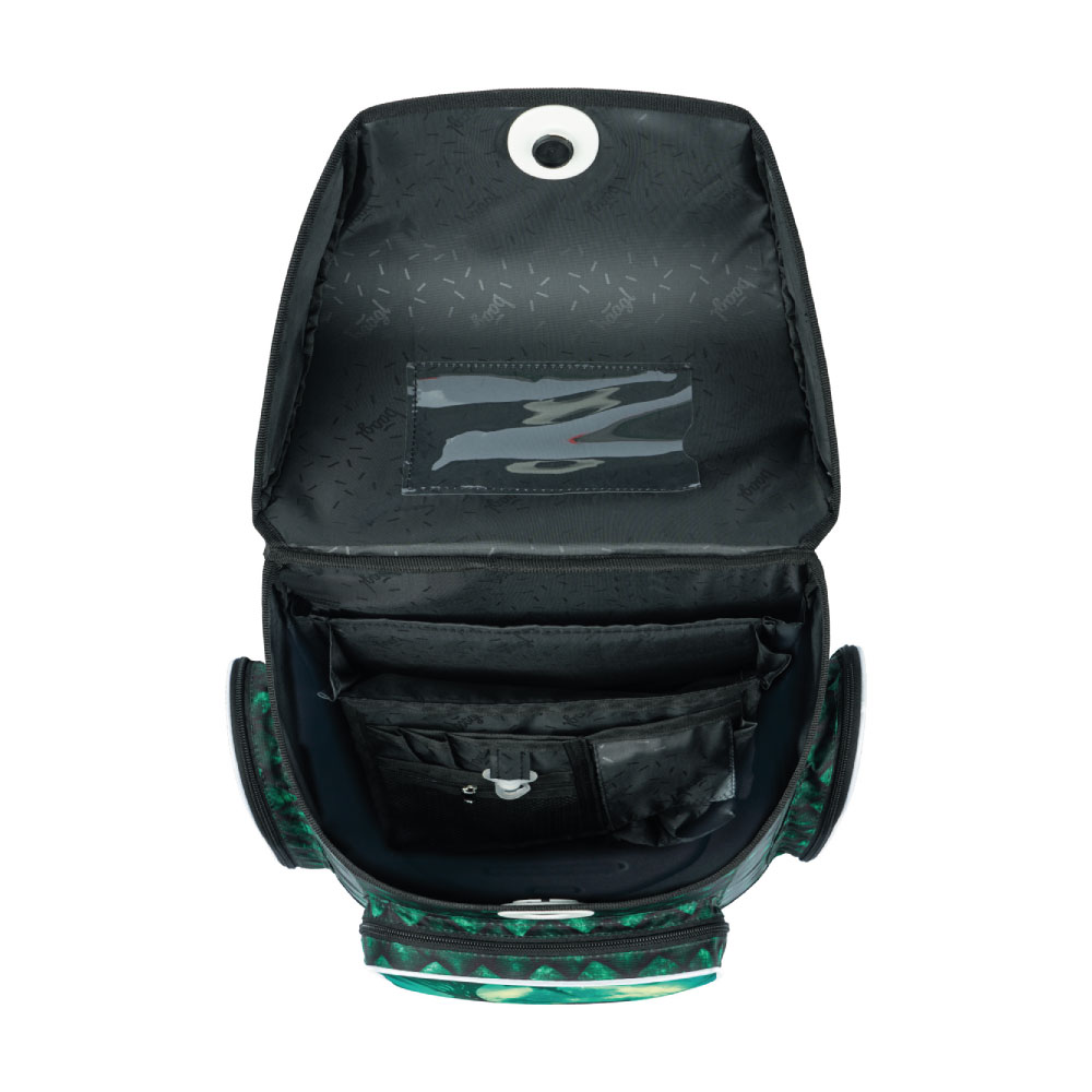 • Uvnitř aktovky je průhledná kapsa na rozvrh a vnitřní organizér umožňující rovnoměrné rozložení hmotnosti.