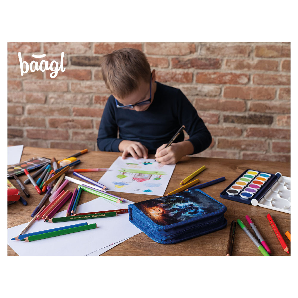 • Klasický školní jednopatrový penál s dvěma chlopněmi.