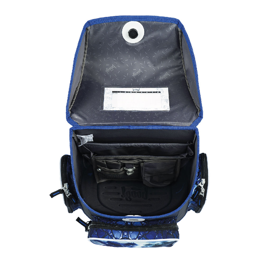 • Uvnitř aktovky je průhledná kapsa na rozvrh a vnitřní organizér umožňující rovnoměrné rozložení hmotnosti.