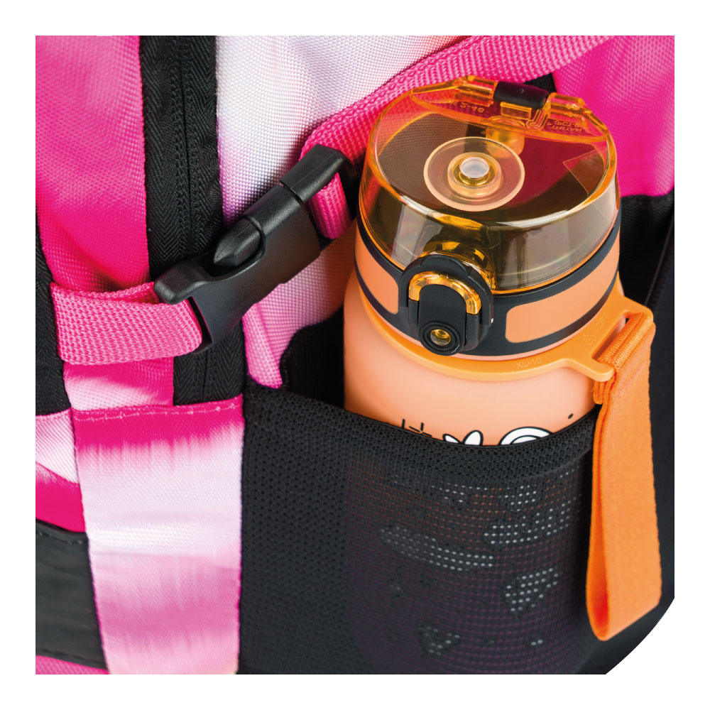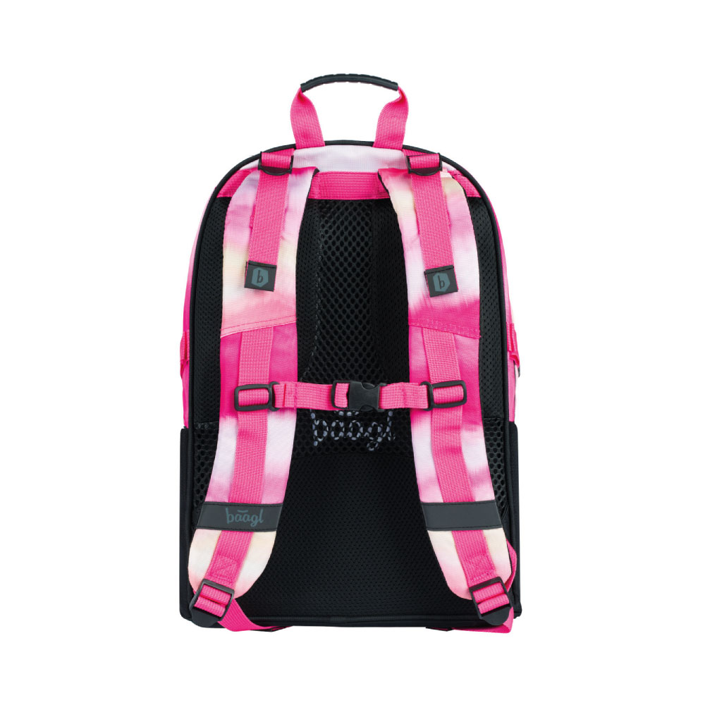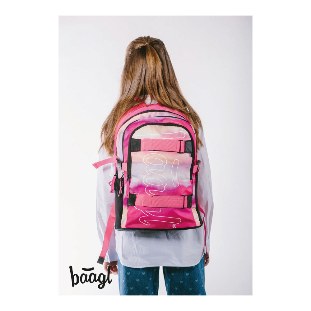 Dívčí školní set Skate Pink Stripes ve výrazně růžové barvě obsahuje batoh Skate, penál a sáček na obuv, vhodný od 3. třídy