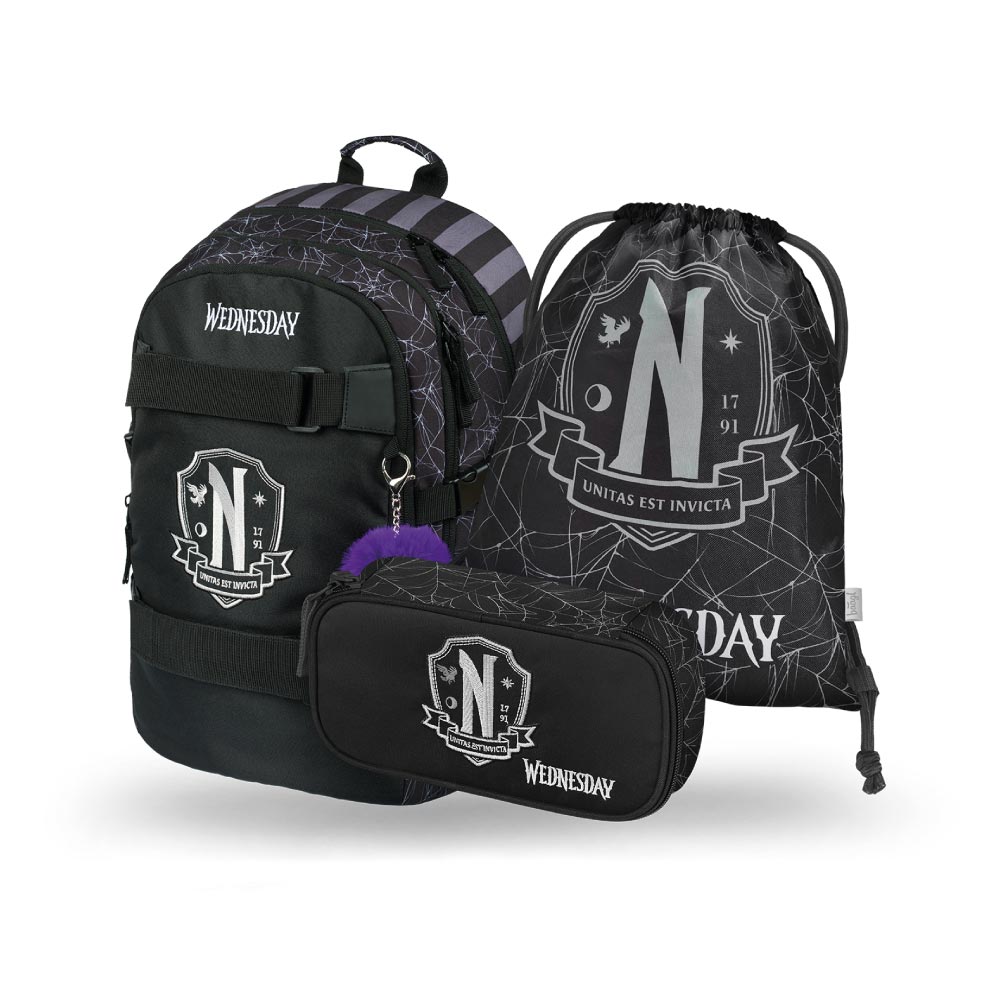 Školní set Skate Wednesday Nevermore: batoh, penál, sáček