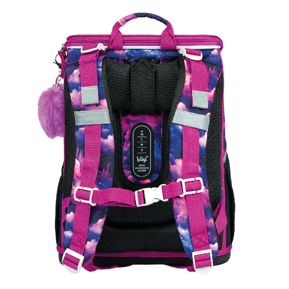 • Posuvný zádový systém BAAGL ADJUSTABLE SYSTEM umožňuje nastavení optimální polohy popruhů vzhledem k výšce dítěte.