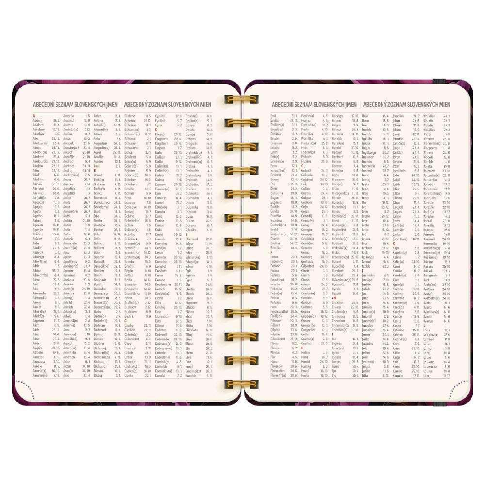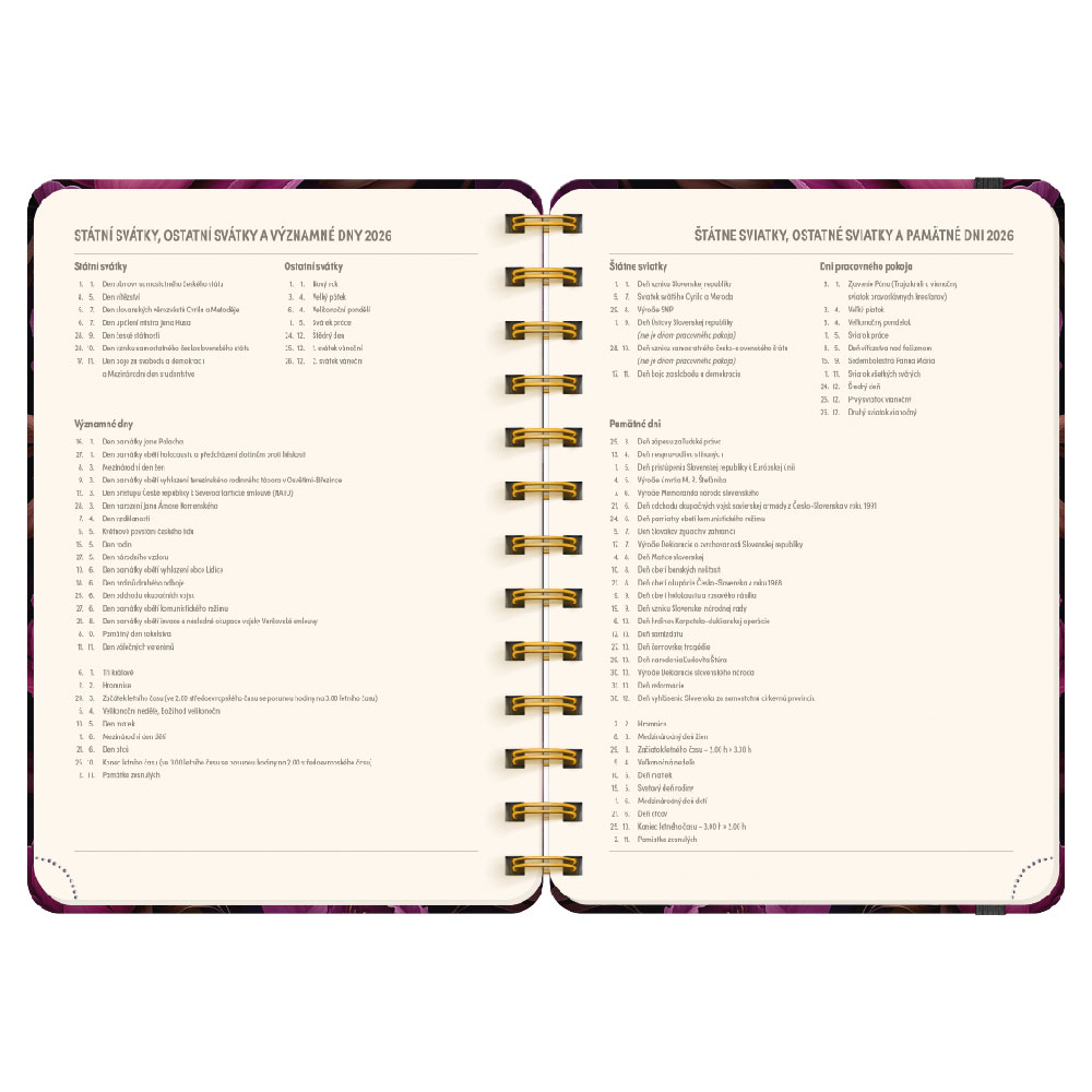 Kalendárium: týdenní 18 měsíční 2 jazyčné (CZ, SK)