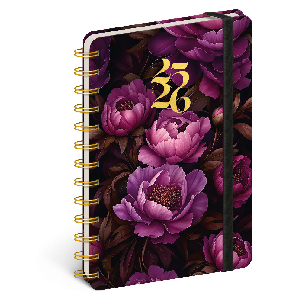 Spirálový 18měsíční diář Petito - Fialové květy 2025/2026