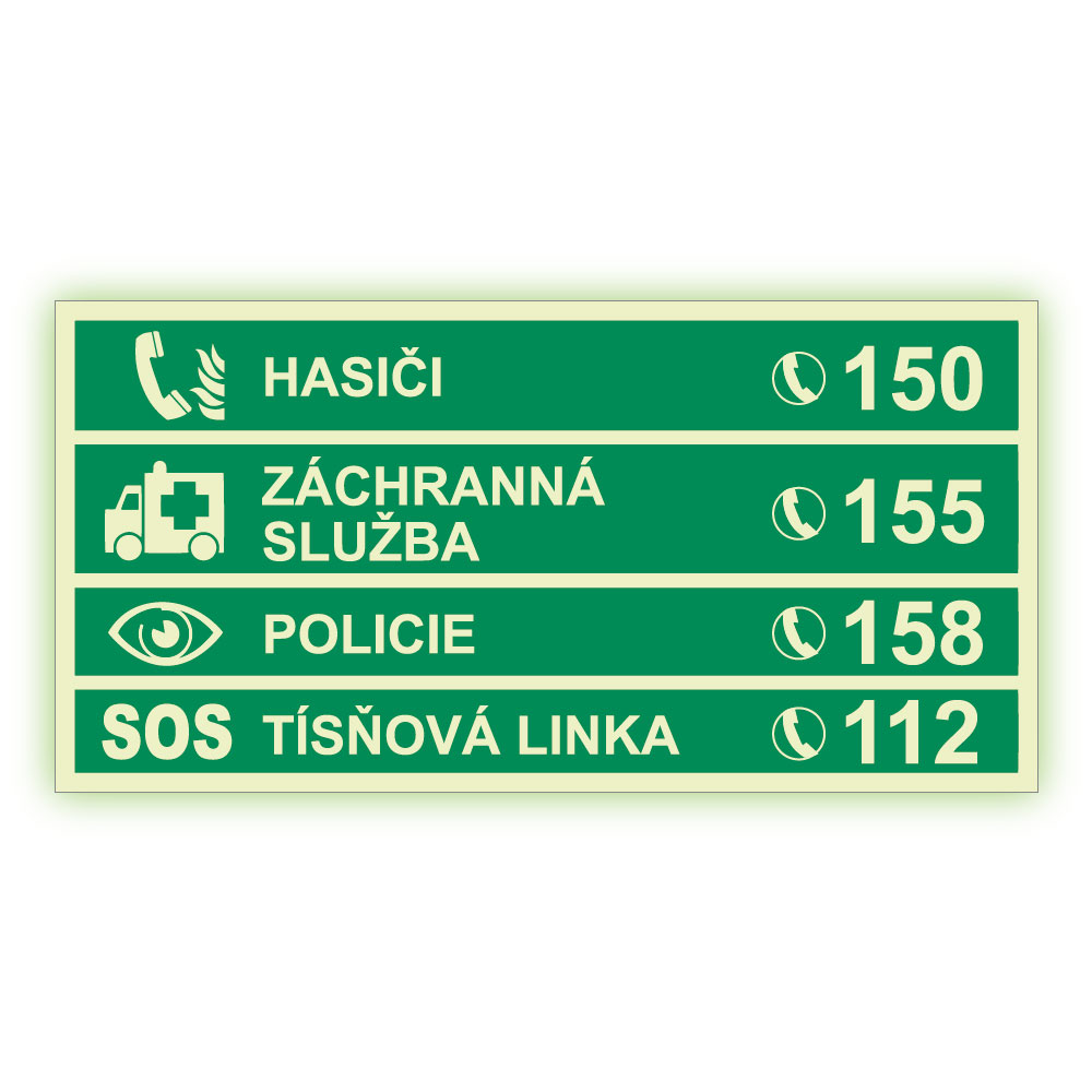 Tísňová telefonní čísla - fotoluminiscenční tabulka, samolepka 300x150 mm RBT-SF8-439 Tísňová telefonní čísla - fotoluminiscenční tabulka, samolepka 300x150 mm Fotoluminiscenční 300 x 150 mm AAApapir