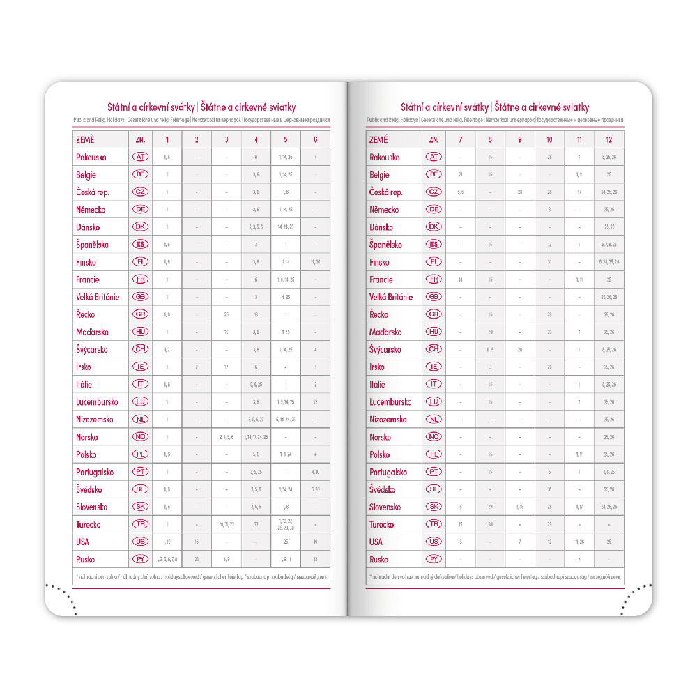 Kalendárium: 6jazyčné týdenní (CZ, SK, EN, DE, HU, RU)