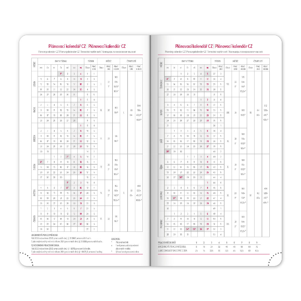 roční plánování 2026 a 2027, pracovní plánovací kalendář,
