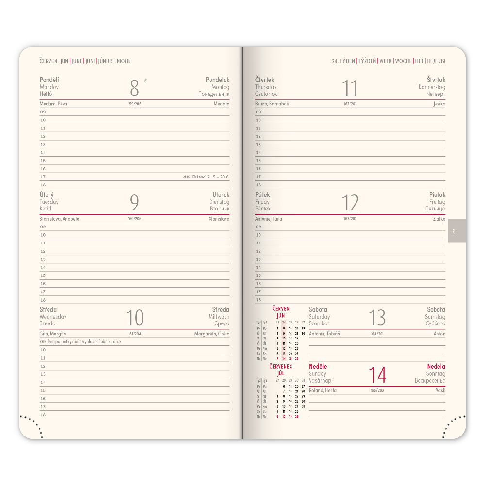 Kalendárium: 6jazyčné týdenní (CZ, SK, EN, DE, HU, RU)