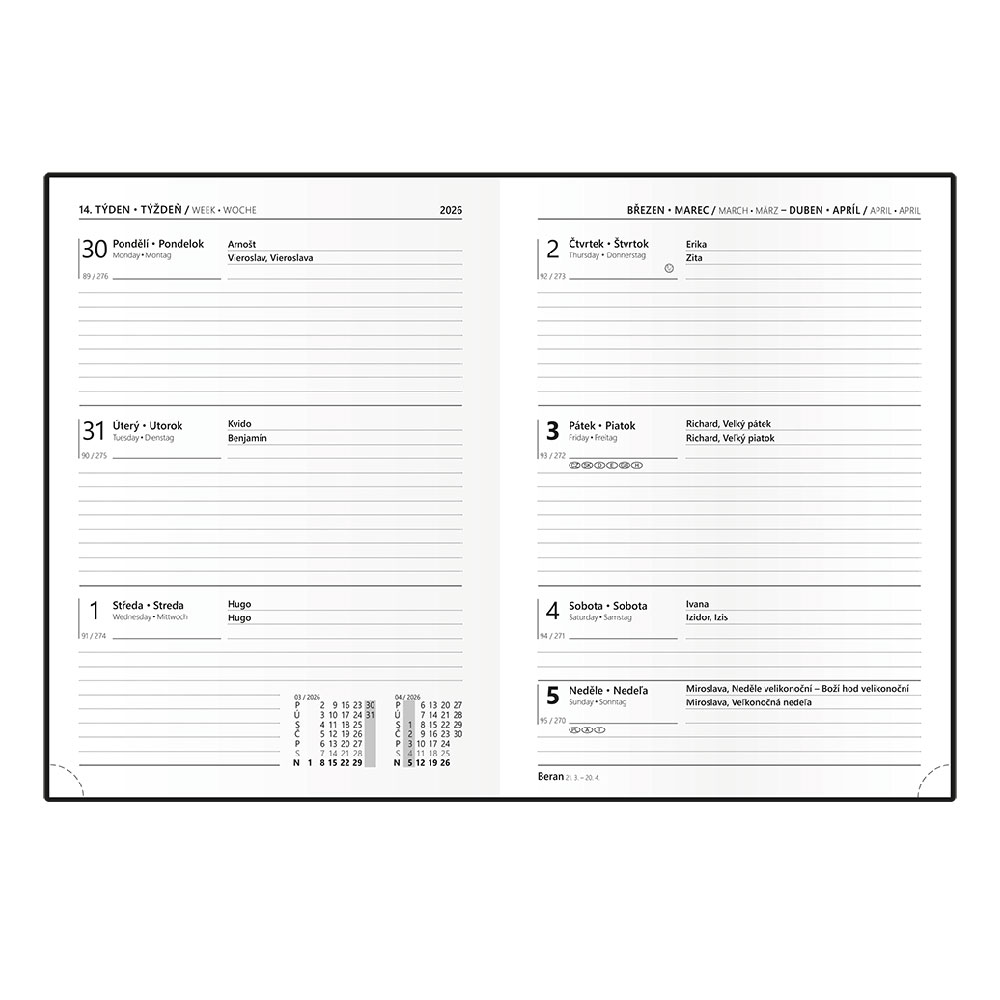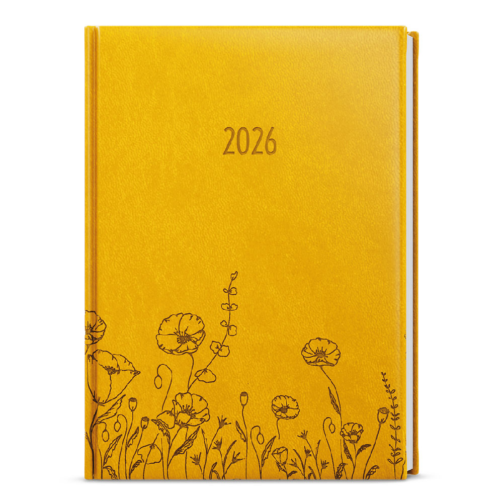 Týdenní diář 2026 Prokop Vivella s ražbou B6 - okrová - Kytky