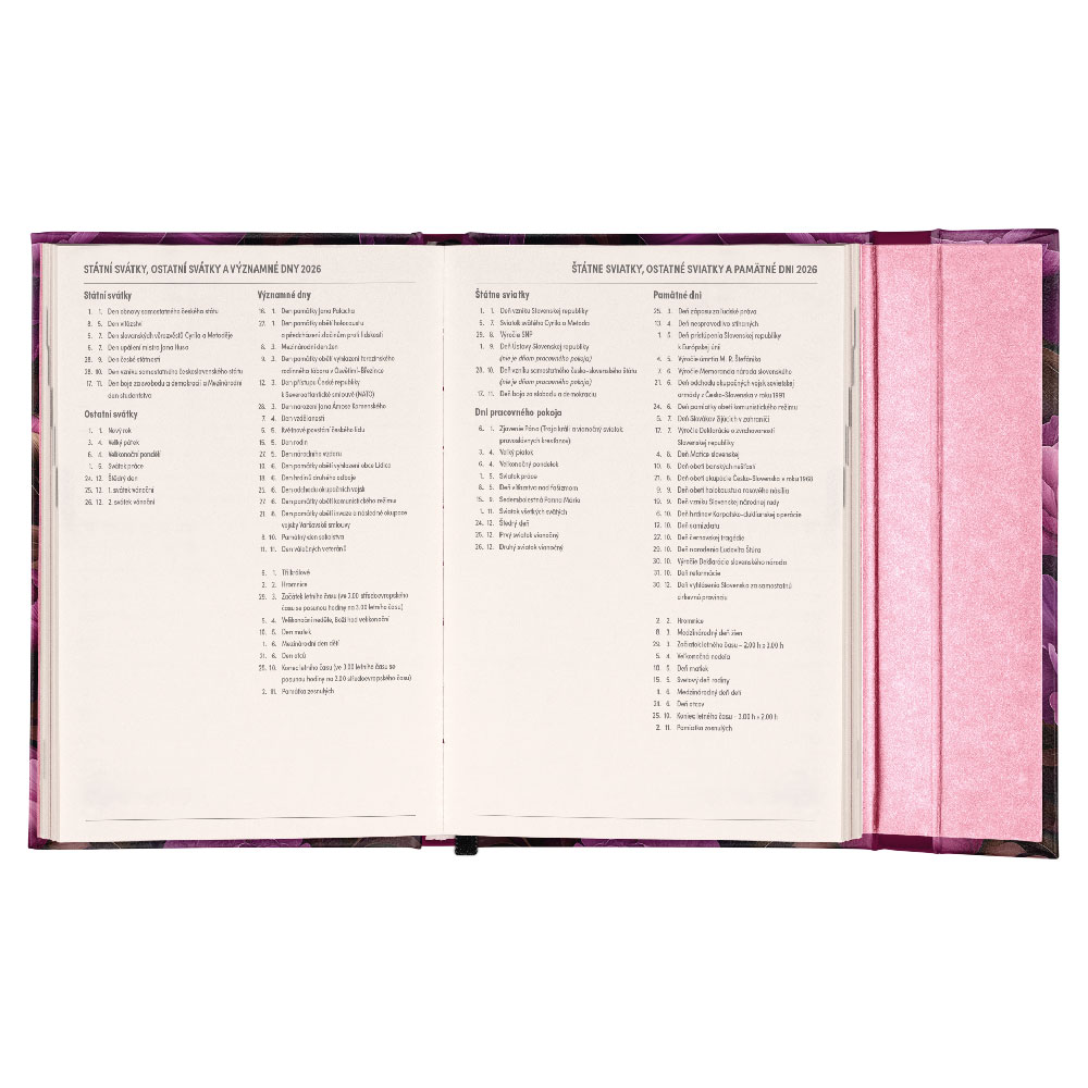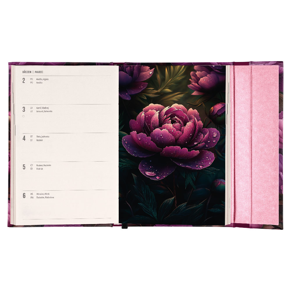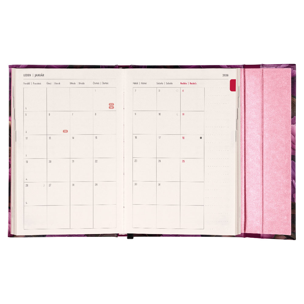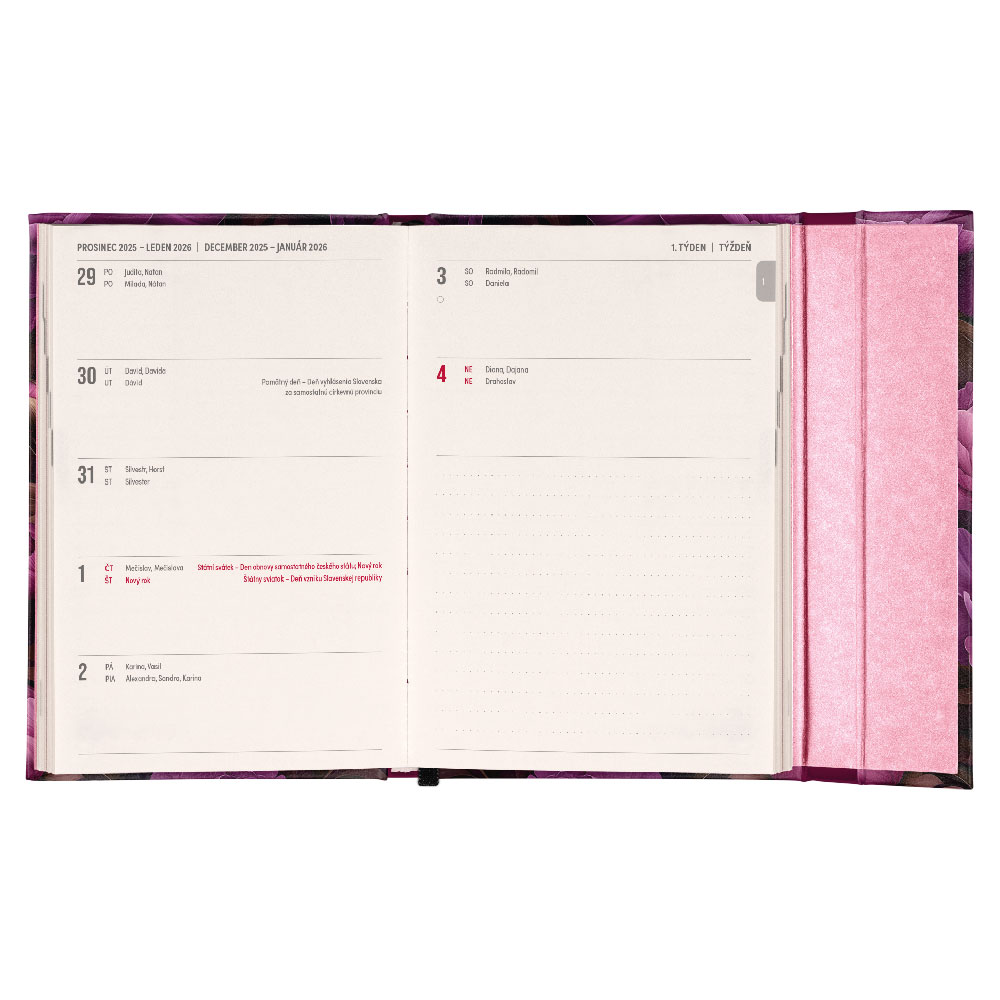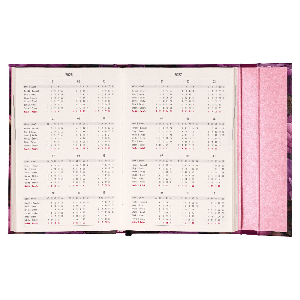 Týdenní magnetický diář 2026 B6 Fialová květy
