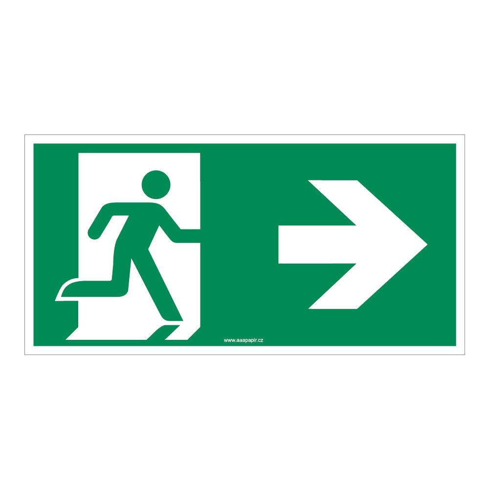 RBT-S1-429 | Únikový východ vpravo - bezpečnostní tabulka, samolepka 300x150 mm | Samolepka | 300 x 150 mm | AAApapir |