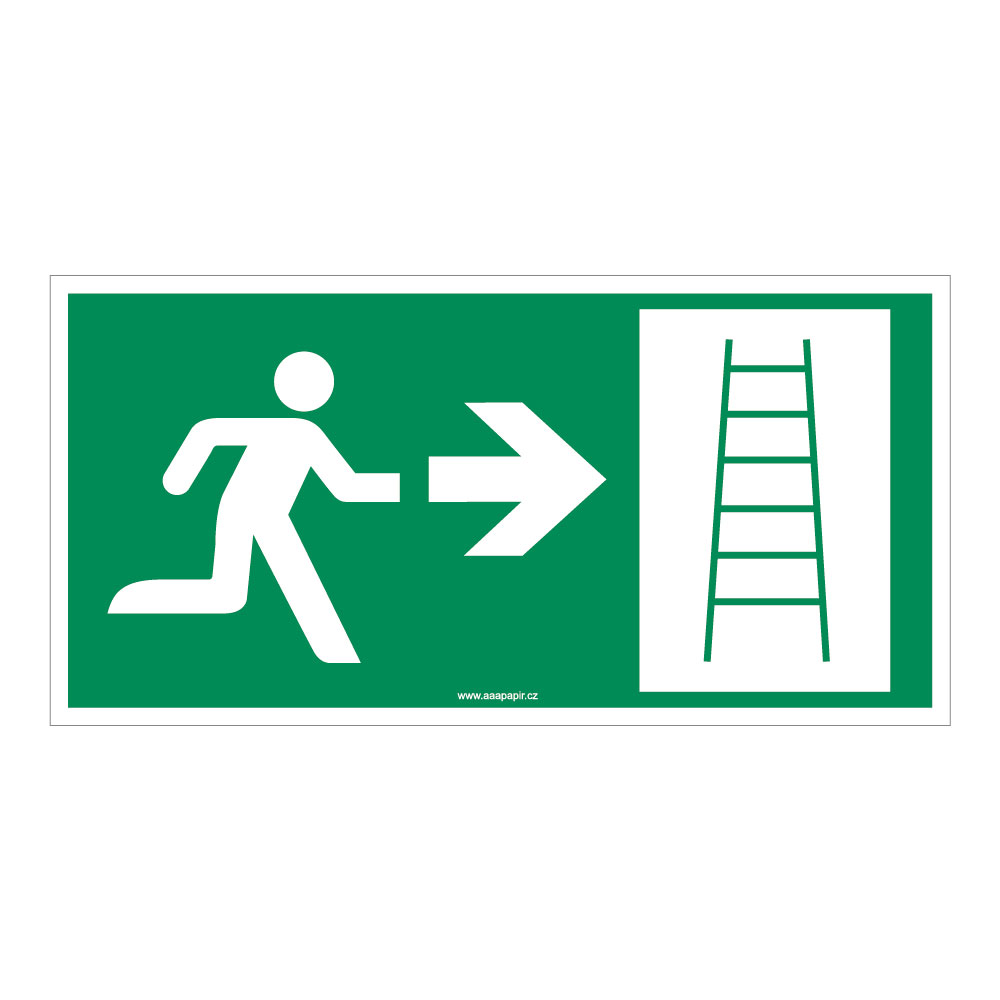 Únikový žebřík - směr vpravo - bezpečnostní tabulka, samolepka 300x150 mm