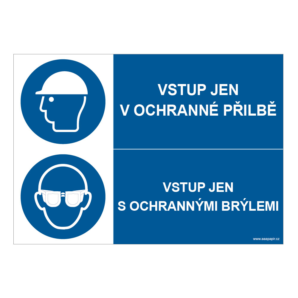 VSTUP JEN V OCHRANNÉ PŘILBĚ - VSTUP JEN S OCHRANNÝMI BRÝLEMI, KOMBINACE, plast 2 mm, A4 RBT-P31-1031 VSTUP JEN V OCHRANNÉ PŘILBĚ - VSTUP JEN S OCHRANNÝMI BRÝLEMI, KOMBINACE, plast 2 mm, A4 Plastová tabulka 2 mm A4 (210x297 mm) AAApapir