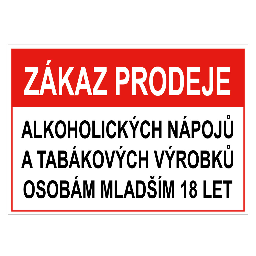 Zákaz prodeje alk. nápojů a tab. výrobků ml. 18 - bezpečnostní tabulka, plast 0,5 mm, 75x150 mm